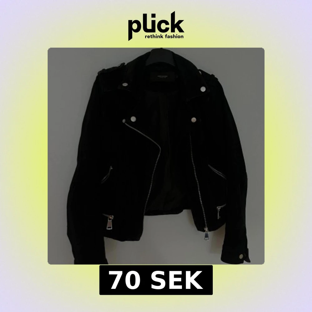 Säljer en svart skinnjacka från Vero Moda med silvriga dragkedjor och knappar. Jackan har snedställd dragkedja och flera fickor. Jackan är liten i storleken.