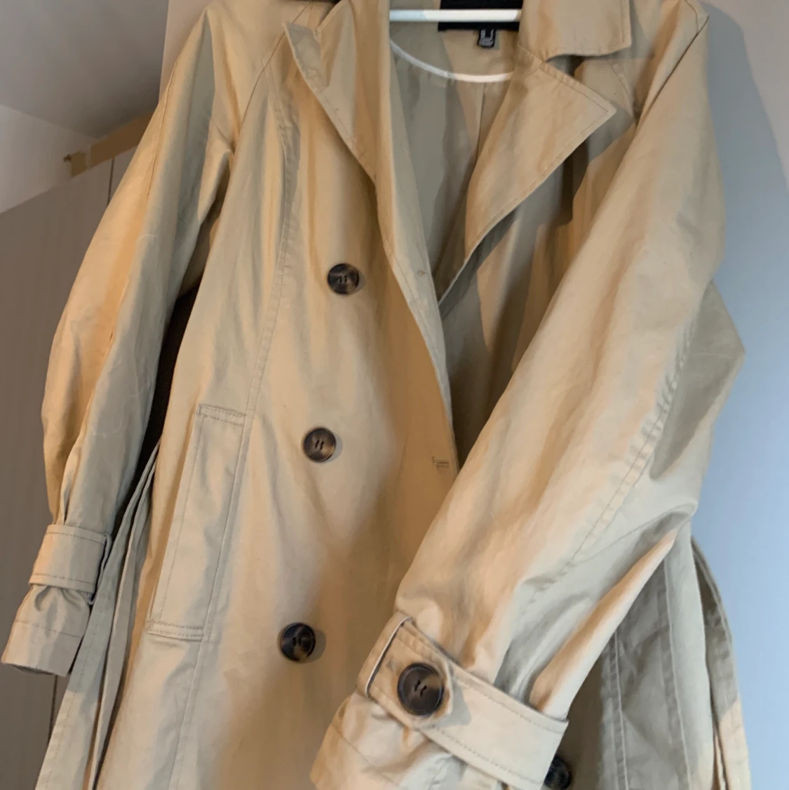 en jätte fin trenchcoat ifrån vero moda, den är i storlek xs , men är oversized så passar mig som har storlek 42, så beror på hur man vill att den ska sitta, använd några gånger