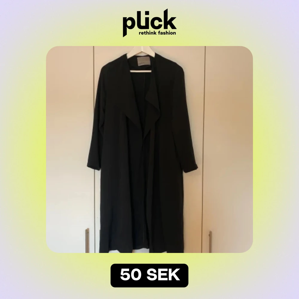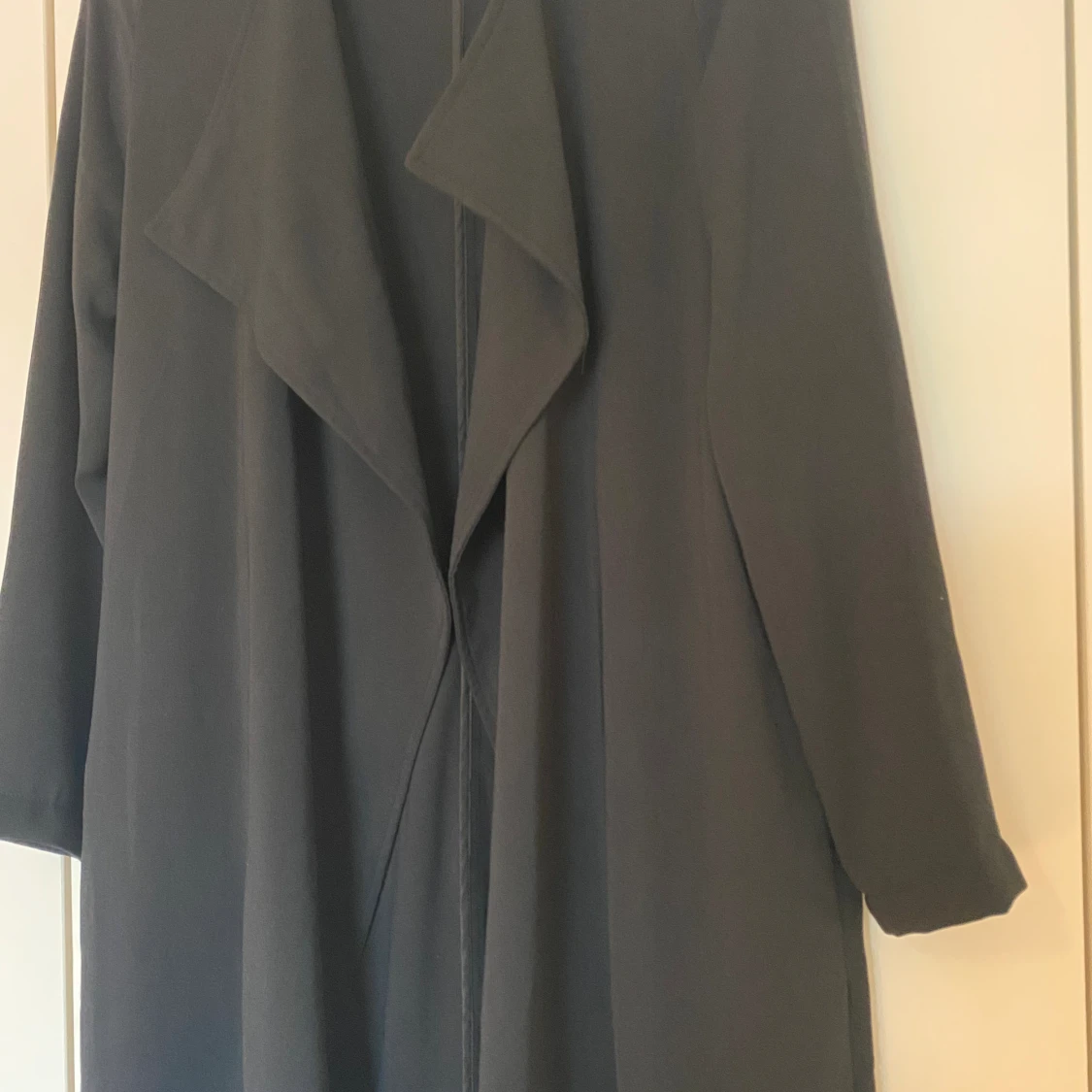 Svart tunn kappa från Vero Moda i storlek XS, band medföljer som kan sättas vid midjan om man så önskar. Den räcker ner till början av vaderna ungefär på mig som är 165 cm lång