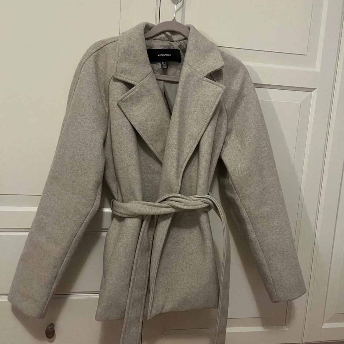 Stilren beige kappa från Vero Moda med klassisk krage och knytskärp i midjan. Jackan har lång ärm, rak passform och är tillverkad i ett mjukt ullblandat material. Perfekt för dig som gillar en clean och enkel look. Tveka inte att höra av dig om du har frågor😇