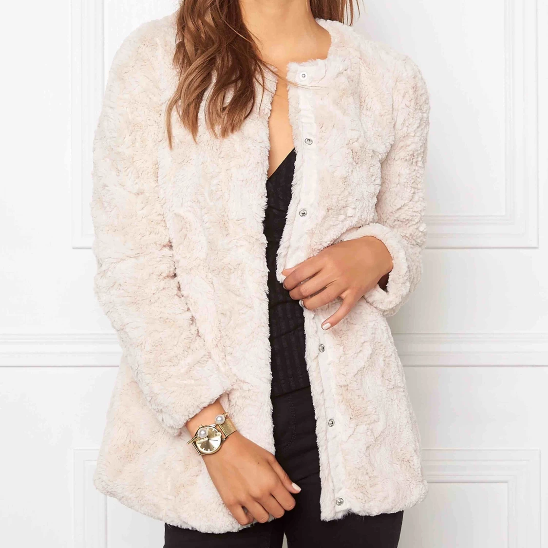 Superfin fake fur jacka i färgen oatmeal. Nyskick. Pris inkl frakt.