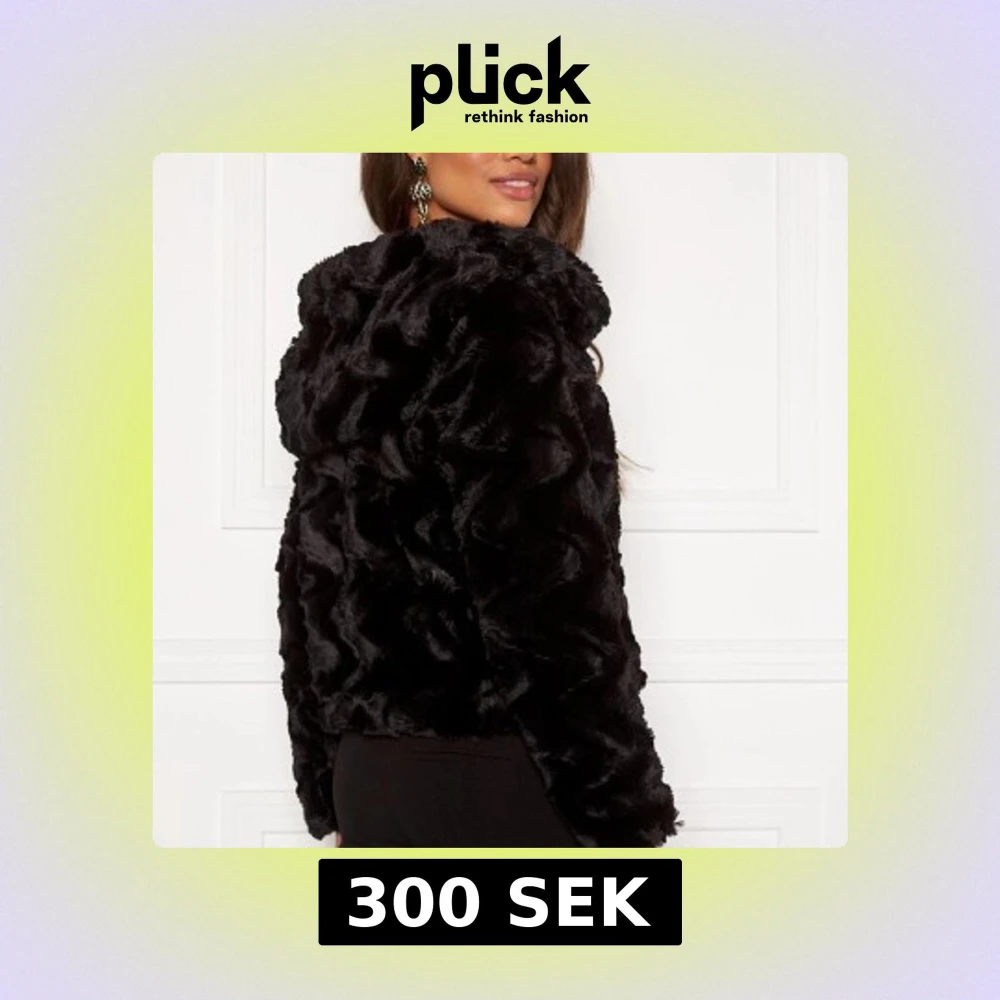 Svart pälsjacka med huva