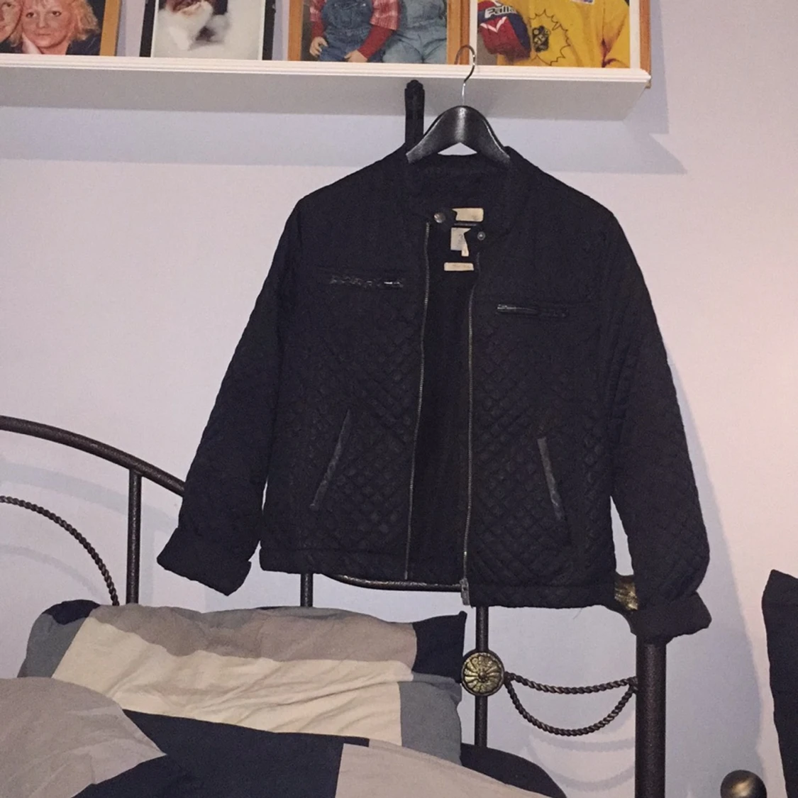 Otroligt snygg och lite annorlunda jacka från Vero Moda tror jag(?). Den har en ficka över vardera bröst med dragkedja och även vanliga fickor. Den är ganska hög i krage och har även en knapp som man kan knäppa igen. Det är ett slags rutigt mönster på den. Påminner om en blandning mellan en bomber- och bikerjacka. (Eftersom jag är ganska kort har jag måsta haft ärmarna uppvikta)