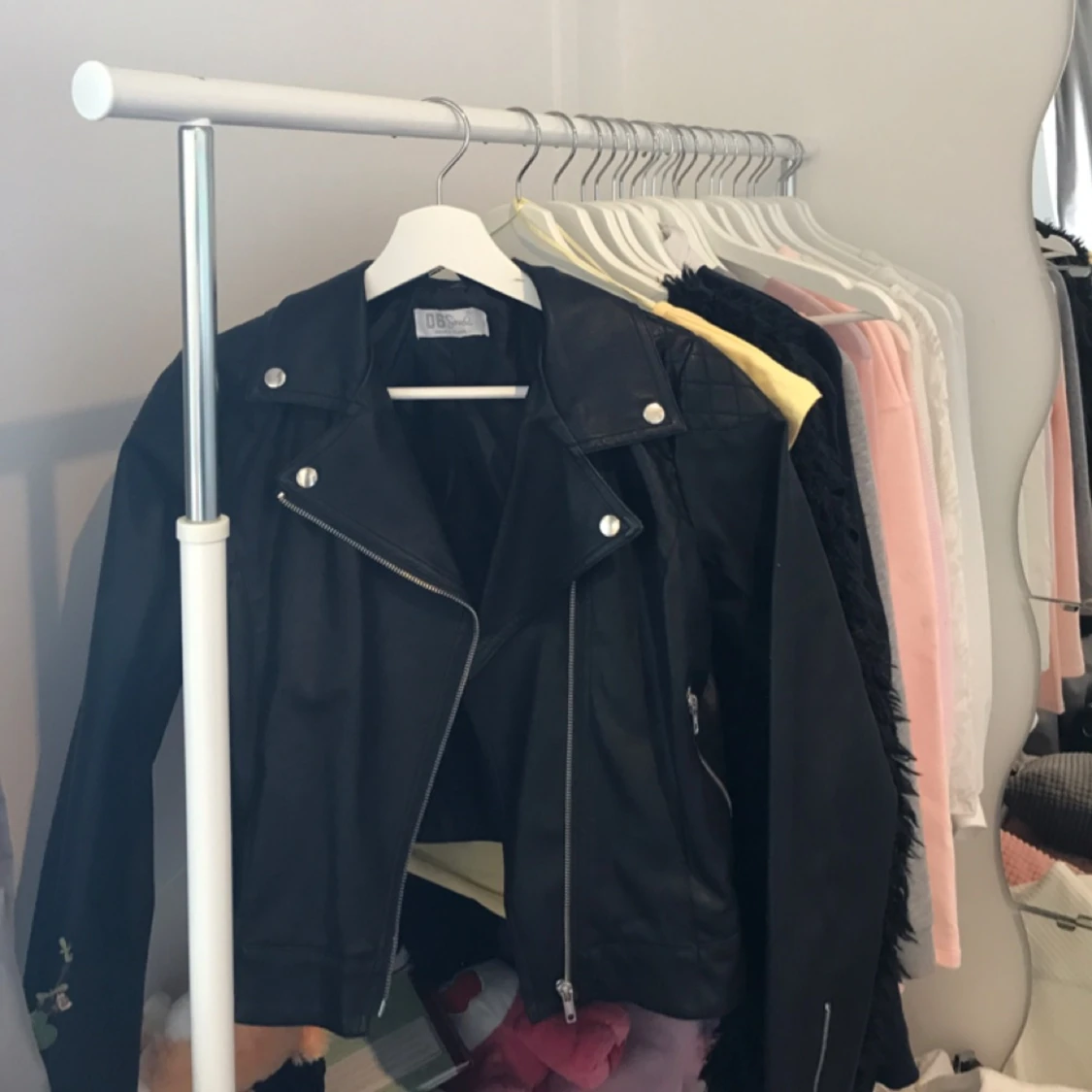 Skinnjacka i storlek 170 (passar XS/S), aldrig använd. Endast testad, kan fraktas mot en fraktkostnad på 45kr (SKINNIMMITATION!!)