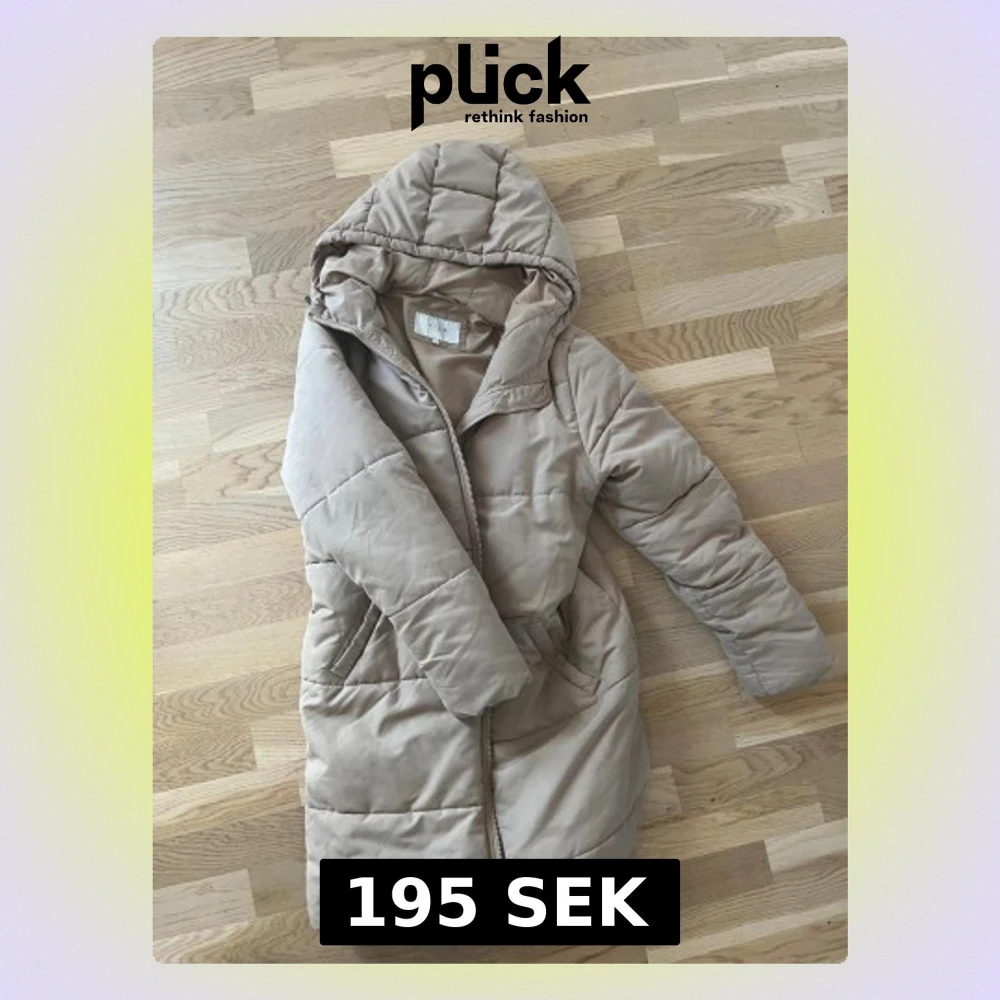 Säljer en beige pufferjacka med huva och dragkedja framtill. Jackan är lång, har två sidofickor och quiltade sömmar som ger en schysst look. Perfekt för kalla dagar när man vill vara både varm och snygg. Passar dig som gillar en clean och enkel stil.