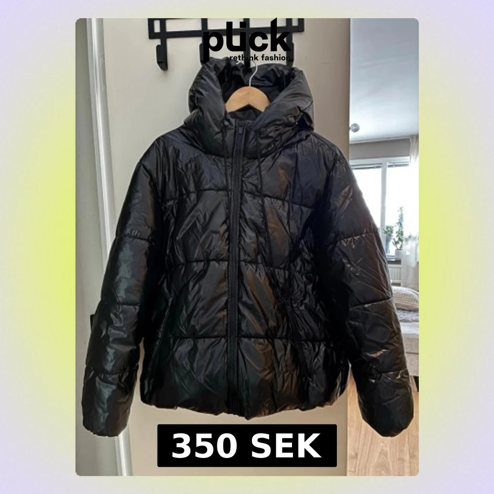 Svart pufferjacka från Vila i storlek 38. Jackan har en stor huva, dragkedja framtill och snörning i nederkant för extra komfort. Materialet är glansigt och syntetiskt, perfekt för kalla dagar. Enkel och clean design som funkar till allt.