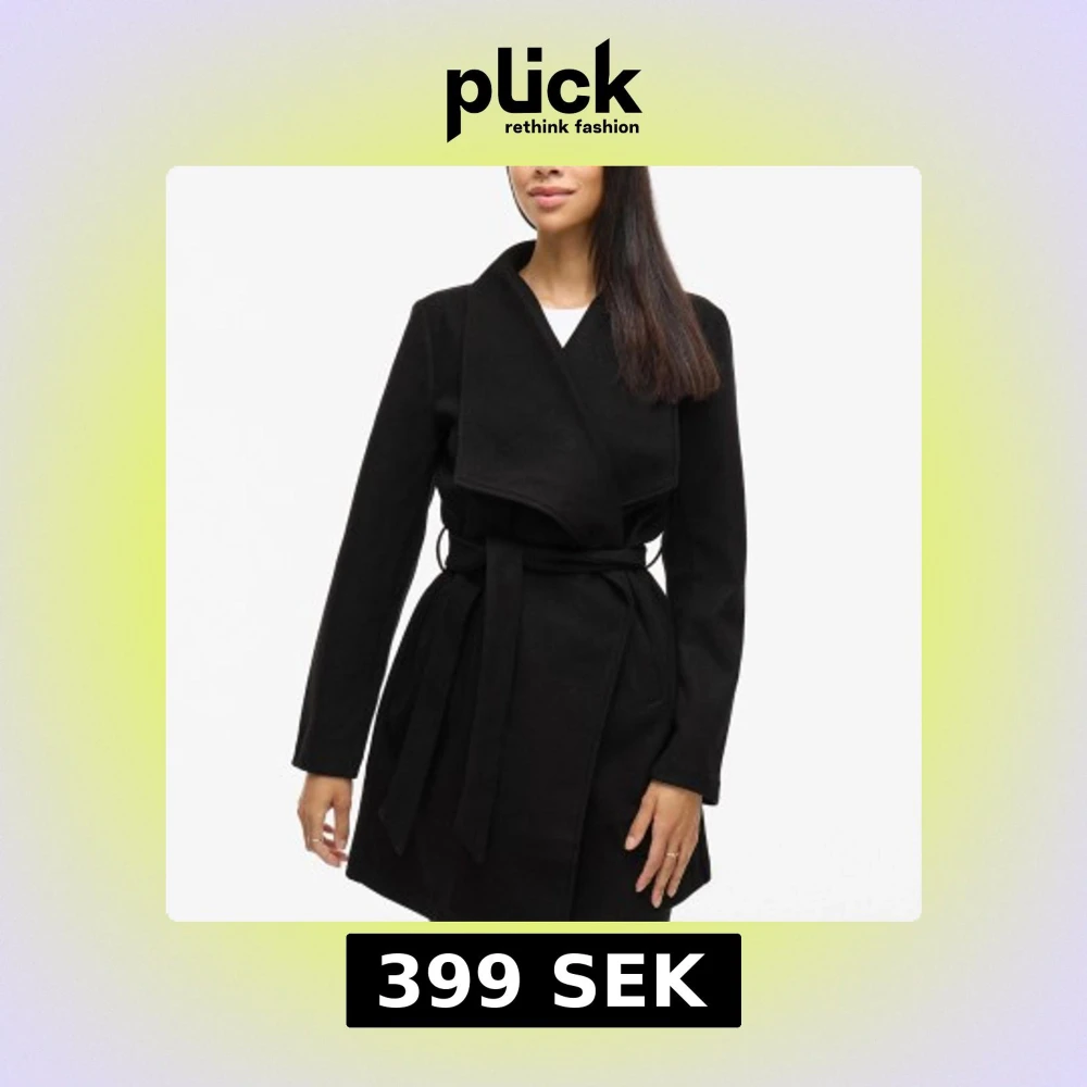Svart kappa från Vila med snygg omlottkrage och bälte i midjan. Jackan har lång ärm och stilren design som ger en clean look. Materialet är mjukt och känns lyxigt, perfekt för dig som gillar minimalistisk stil. Passformen är normal och längden går till strax ovanför knä. Säljer igen då tidigare köpare ångrats sig. Ligger på 600kr och säljer om för 399kr