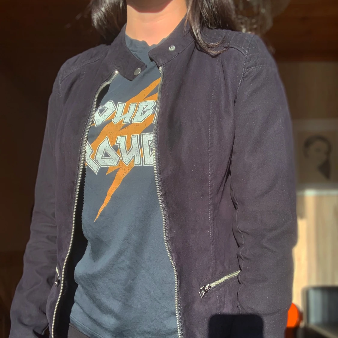 Snygg svart jacka⚡️⚡️ på bilden är färgen lite missvisad pga ljuset men den är helt svart. Frakt 50kr men kan även mötas upp❣️