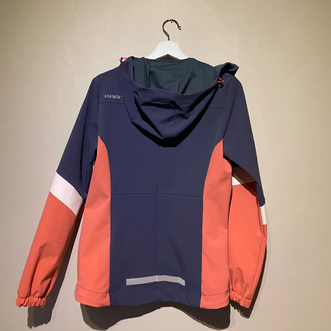 Kari traa jacka i storlek S. Svårt att få till färgen på bild, men den är lila/rosa. Dragkedja och huva. Material: polyamid och elastan. Finns att hämta i centrala Göteborg eller kan skickas via valfri applikation.