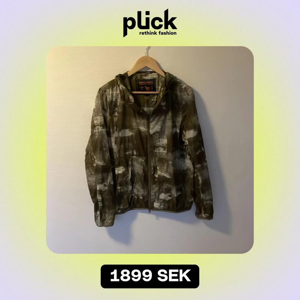 Säljer en cool camouflage vindjacka från Woolrich i storlek M. Perfekt för höst och vår, med ett unikt mönster som verkligen sticker ut. Helt ny och knappt använd.