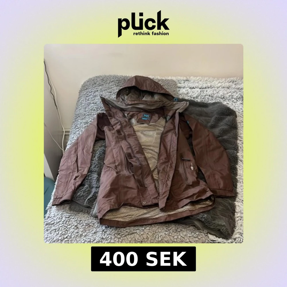 Brun vindjacka från Helly Hansen i storlek XS (stor). Jackan har huva, Helly Tech-teknologi, meshfoder på insidan och är hyfsat lång. Perfekt för blåsiga dagar!