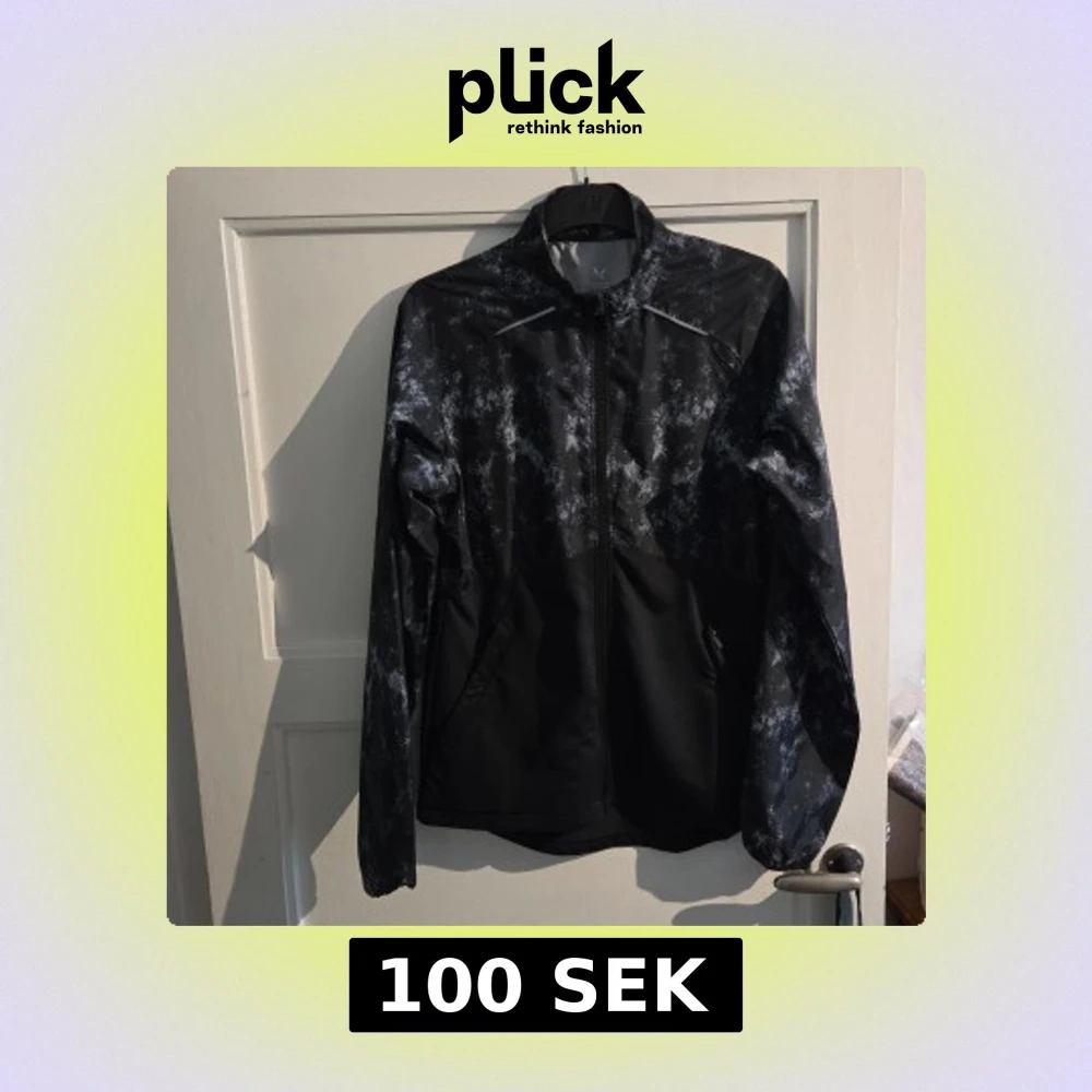Svart vindjacka från SOC i storlek S med coolt abstrakt mönster i vitt och grått. Jackan har hel dragkedja, ståkrage och två sidofickor. Materialet är lätt och syntetiskt, perfekt för träning utomhus. Reflekterande detaljer på ryggen bröstet och ärmen för extra synlighet.