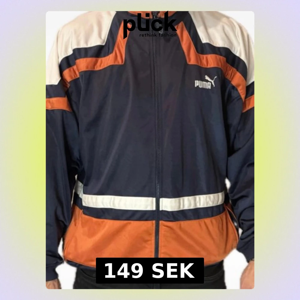 .Beskrivning Säljer en äkta vintage Puma tracksuit-jacka från slutet av 90-talet, ett riktigt samlarobjekt för den som gillar retro streetwear. Detta är en modell som är svår att få tag på idag, särskilt i så här fint skick. Storlek: Large Original pre-2000 Inga synliga tecken på slitage – mycket välbevarad Färger: Navy, vit & burnt orange – klassisk old-school look Perfekt passform och skönt material (typiskt 90s tracksuit-kvalitet) Dragkedja hela vägen + ikonisk Puma-logga