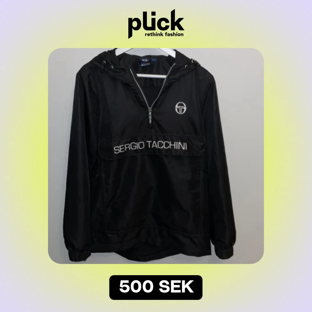 Sergio Tacchini vindjacka i svart. Den är i bra skick och har inga hål eller defekter!