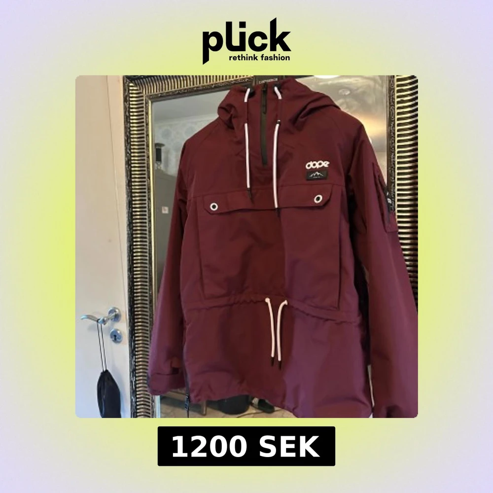 Säljer en snygg vinröd jacka från Dope med huva och dragkedjan är på sidan går fån hand till slutet så man kan öppna hela sidan så de e änkelt å ta av å på. Jackan har en praktisk ficka på bröstet och justerbar dragsko i midjan. Perfekt för kyligare dagar. Helt oanvänd