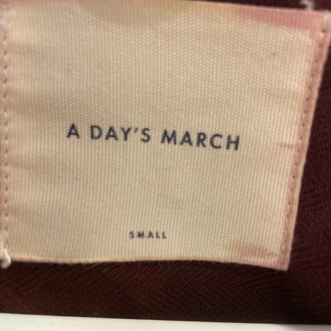 Tjena! Säljer en vinröd overshirt från A days march . Jackan är i storlek S men kan också passa M. Inga defekter förutom lite färg på lappen inuti jackan. Något man inte ser vid användning. Perfekt för hösten