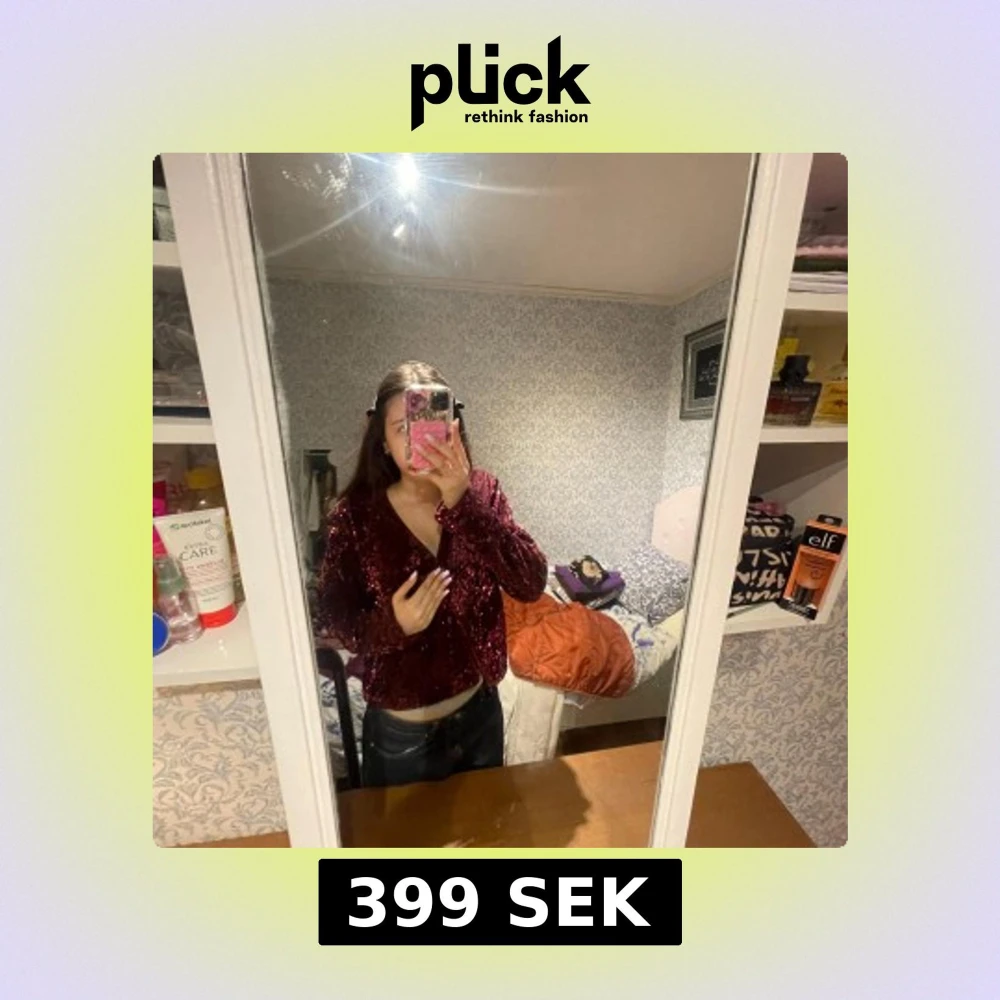 Säljer en vinröd paljettjacka från Bubbleroom by Lene Orvik. Jackan har lång ärm, är täckt av glittriga paljetter och har en croppad passform. Perfekt för dig som vill sticka ut och glänsa lite extra.