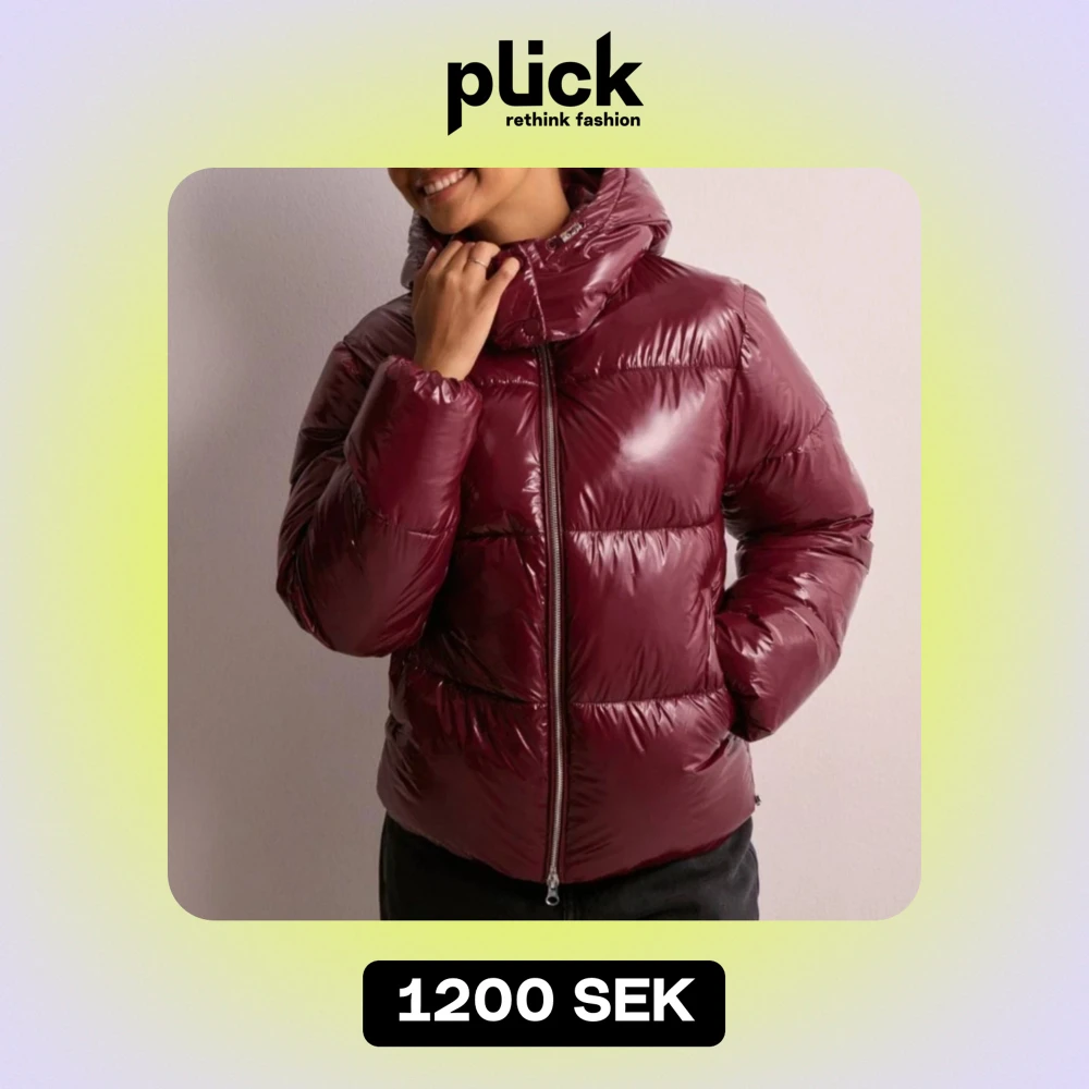 Snygg vinröd pufferjacka med dragkedja och hög krage. Perfekt för kyliga dagar med sin vadderade design som håller dig varm och bekväm.Använd 2-3 gånger. Pris kan diskuteras