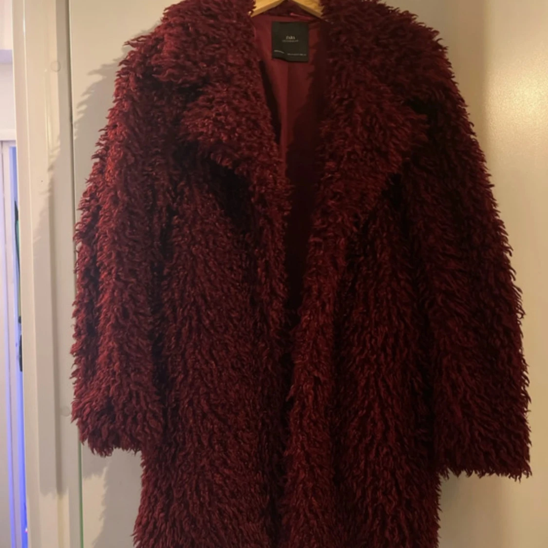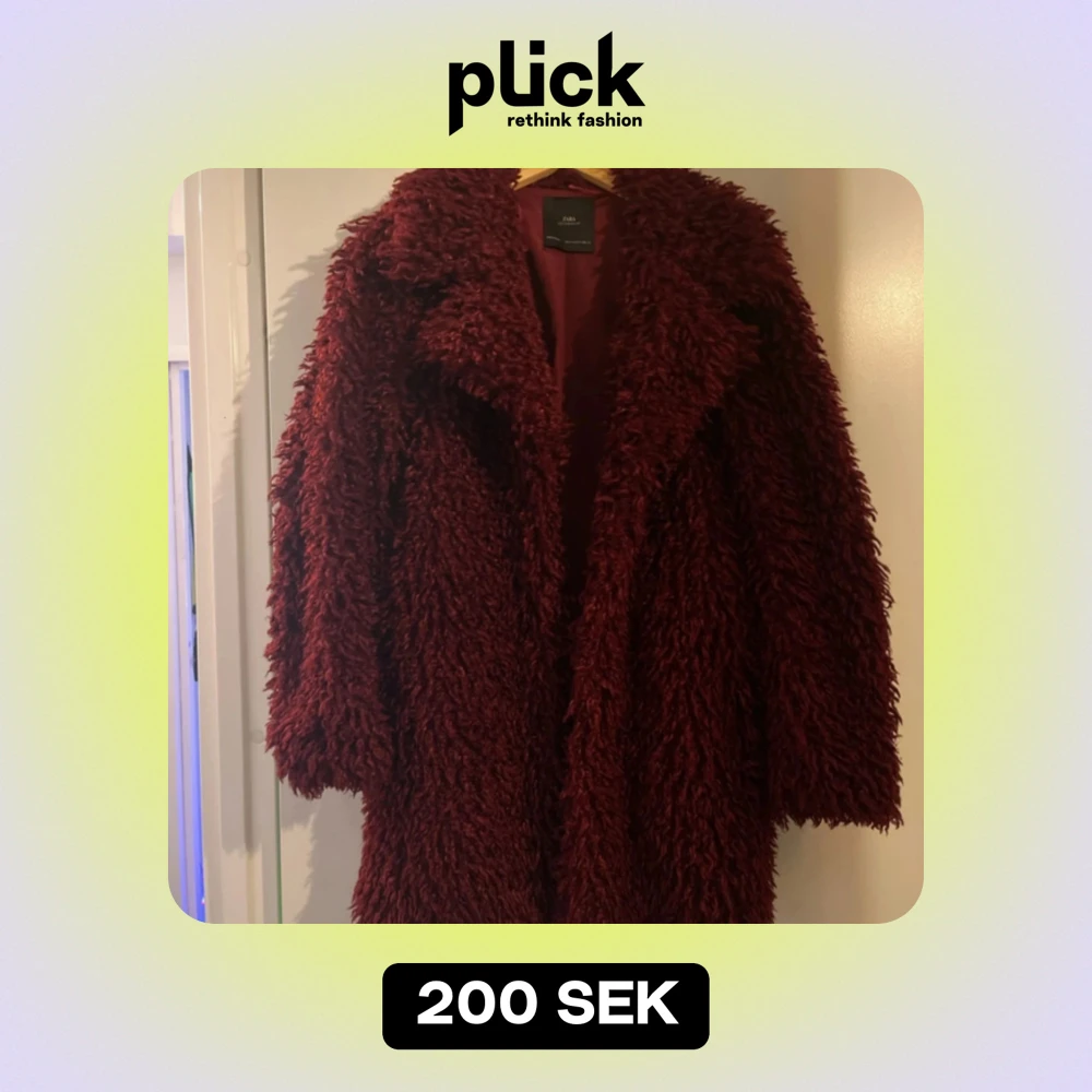 Säljer en supermysig vinröd teddyjacka från Zara. Perfekt för kalla höst- och vinterdagar. Jackan har långa ärmar och en fluffig, varm känsla. Den är i nyskick och passar perfekt för att hålla stilen när det är kallt ute. 🧥✨