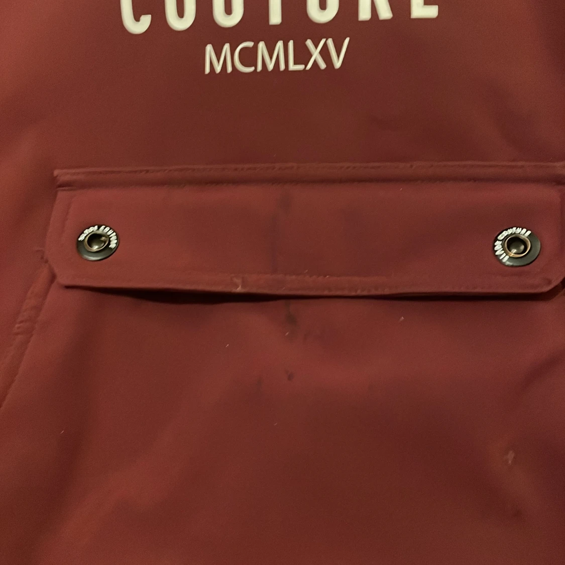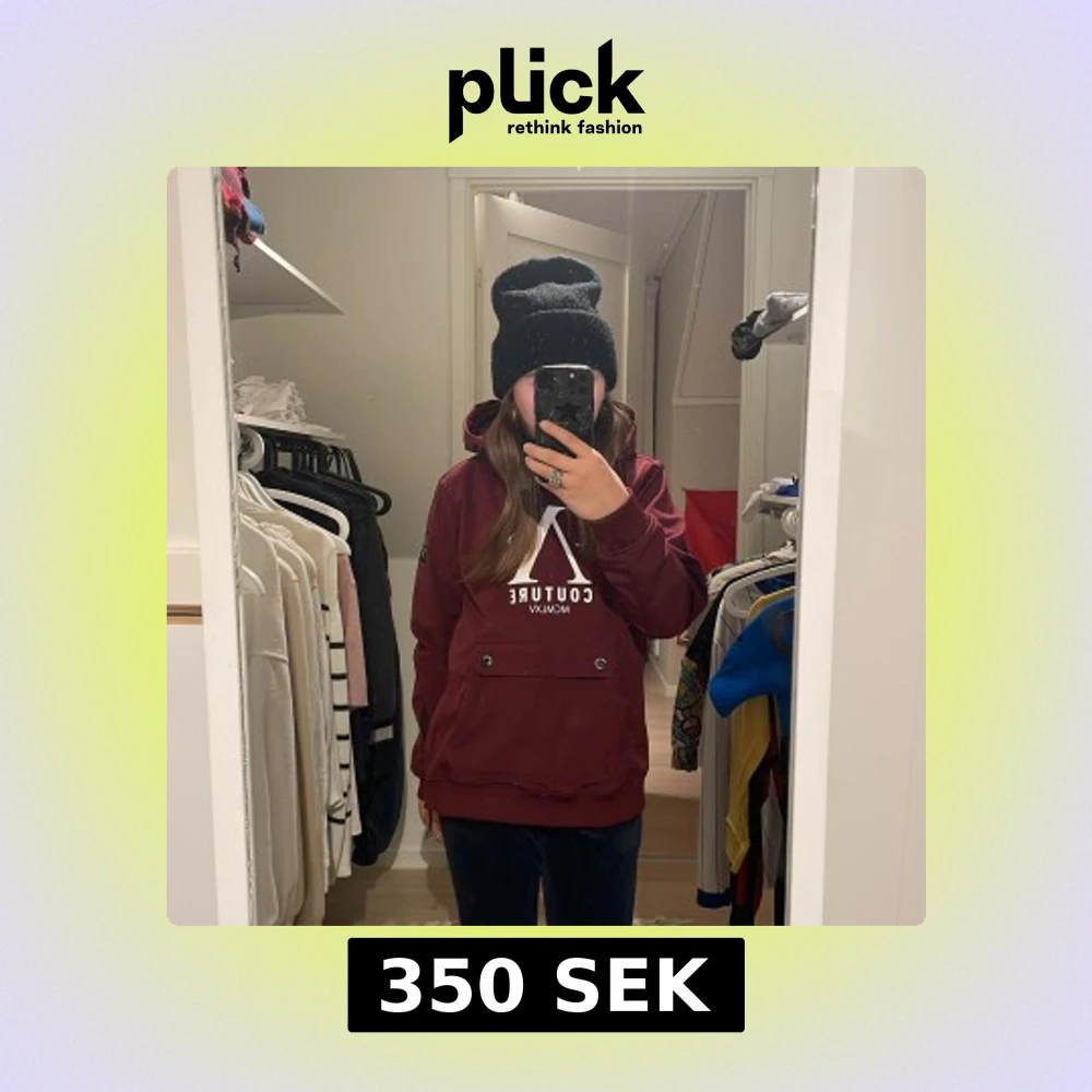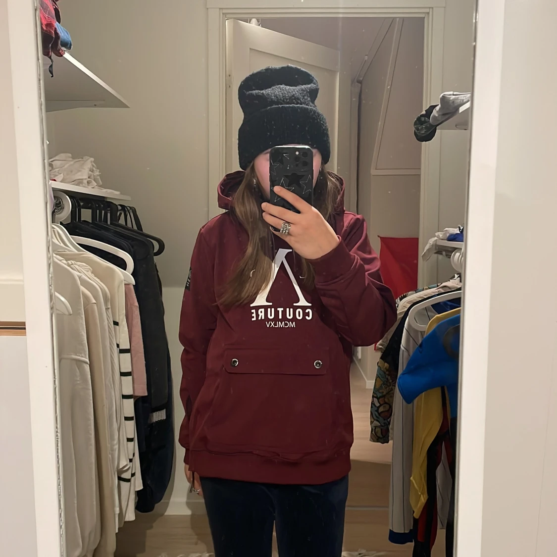 Snygg vinröd skidjacka med huva från Slade Couture som har blivit för liten. Stor vit logga framtill och baktill, praktisk magficka med knappar och dragkedja i sidan. Jackan har en clean look och passar perfekt till höst och vinter.