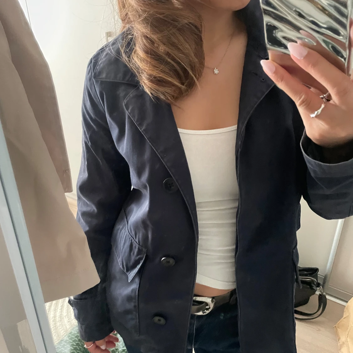 Så fin vintage mörkblå GAP Jacka köpt secondhand i Frankrike, perfekt till hösten då den är lätt men lite varmare än en vanlig sommar jacka ⚜️💙🏹