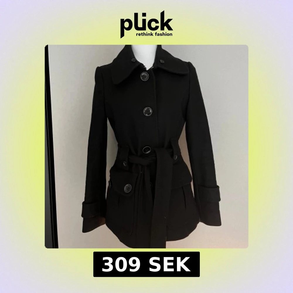 Svart kappa med bälte och stora knappar