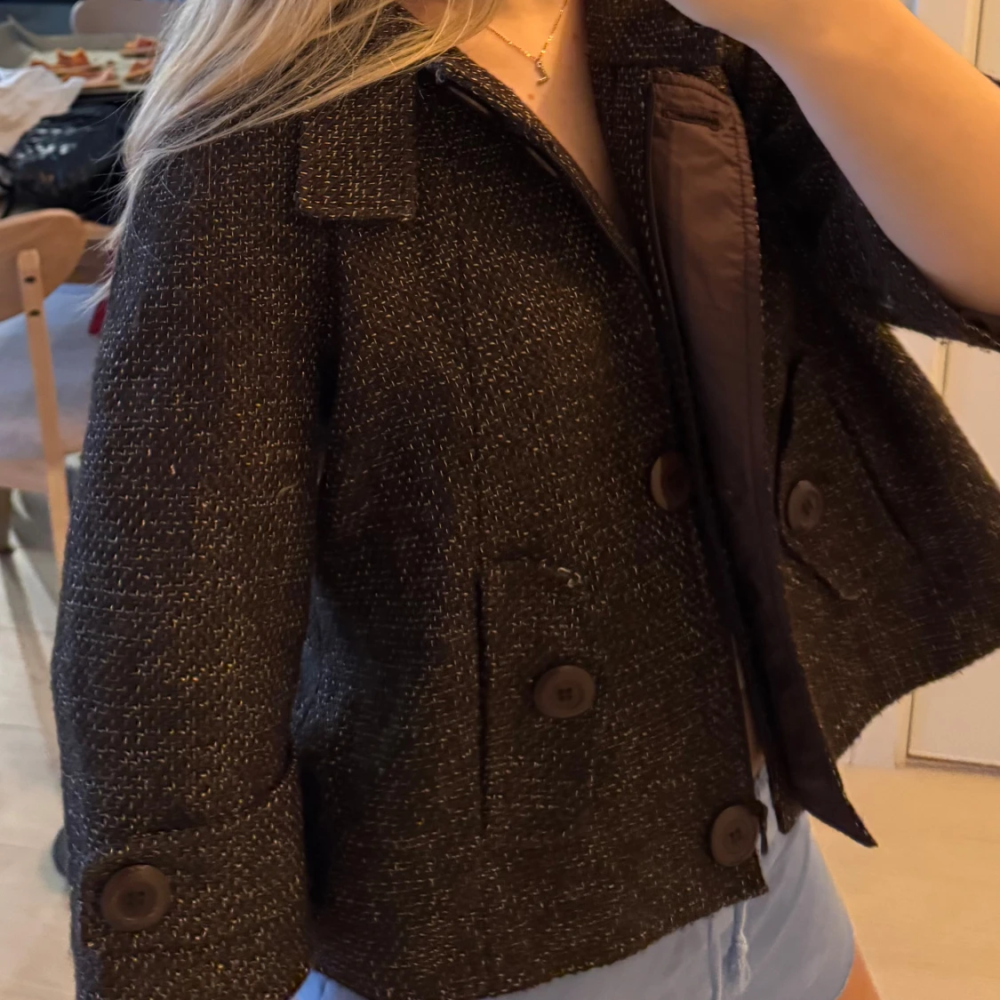 skit snygg trekvart kappa liknande brun jacka skit snygg till hösten passar allt har luva där bak🥰