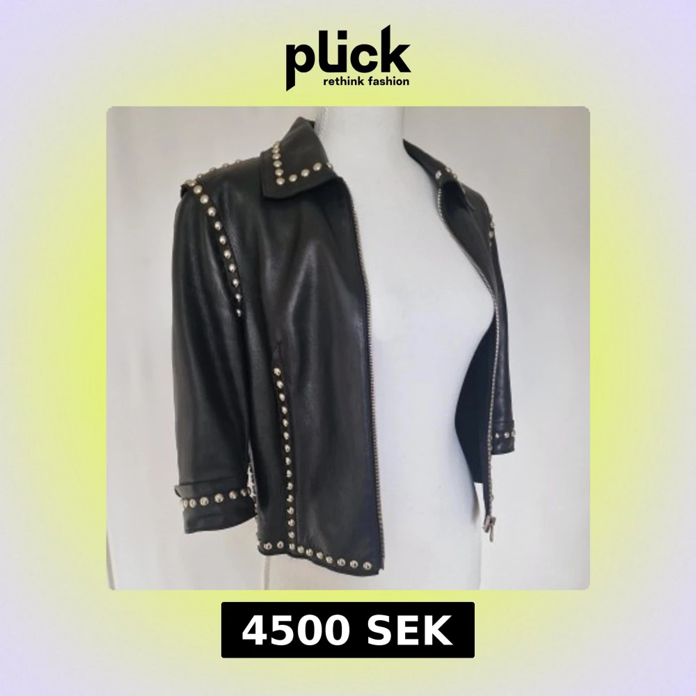 Sällsynt och eftertraktad Dolce & Gabbana vintage läderjacka från tidigt 2000-tal. Tillverkad i exklusivt, mjukt läder med ett lyxigt silkesfoder,dekorerad med silverfärgade nitar.Jackan är i fint vintage skick. Lädret är mjukt och välbevarat. Små tecken på användning, inget som påverkar helhetsintrycket. Det finns en knappt synlig fläck framtill, kan nog tvättas bort.(bild) Fodret av silke med lite slitage på insidan. Skicka gärna ett meddelande för mer info och bilder 🫶