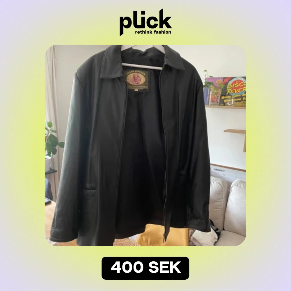 står xl på etiketten, Men är mer M/L (m oversize eller L true to size) Är lite blekt i axlarna, men ifall man inte gillar den looken går det att färga lädret. Finns inga defekter på lädret. Bröst: 48 cm Längd: 78 cm Ärm: 64 cm