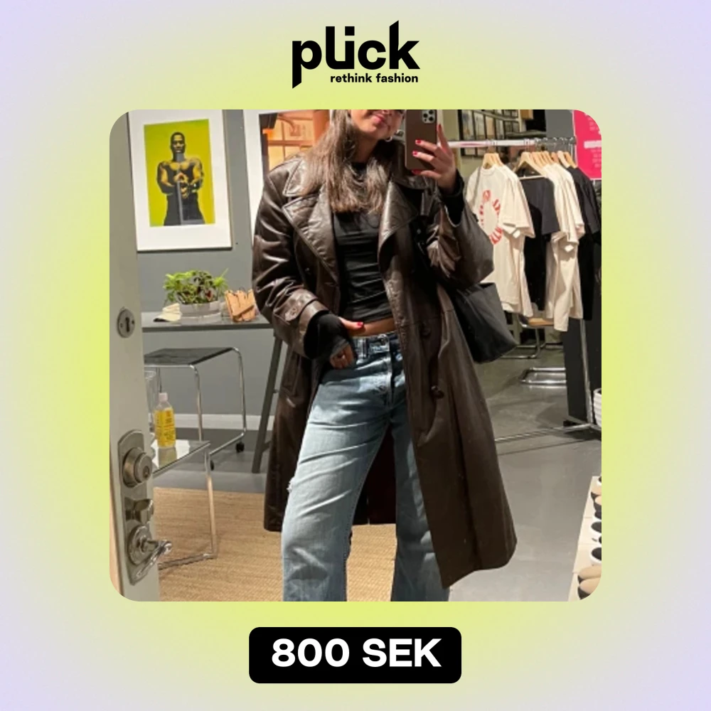 Vintage lädertrenchcoat! Saknar en knapp (syns på bild), annars är den i fint skick trots att den har några år på nacken. Storlek anges inte men skulle gissa på M.