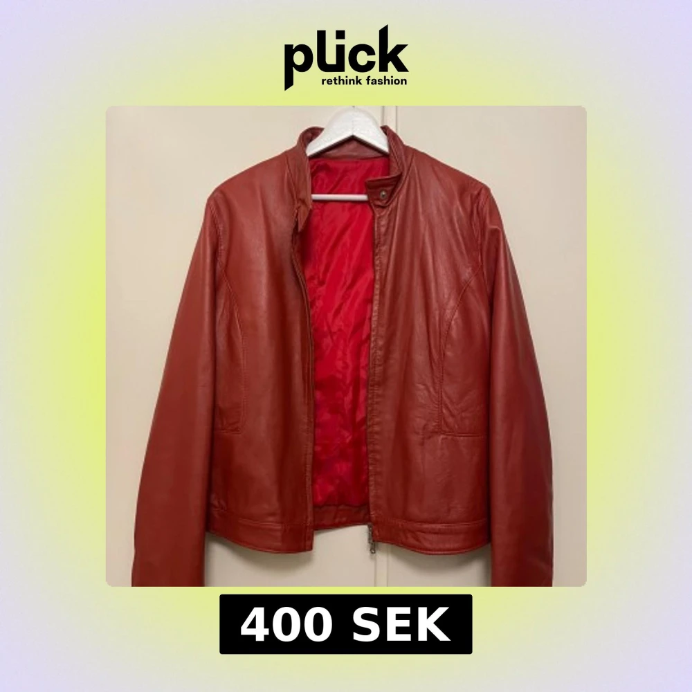 Vintage röd läderjacka i superbra skick. Storlek M för tjej som är 175cm lång, true to size