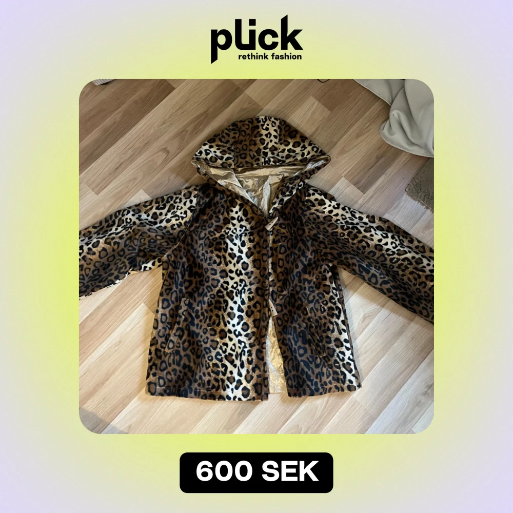Säljer en supercool vintage leopardmönstrad pälsjacka med huva. Jackan har långa ärmar och stängs med knappar framtill. Fint skick och väldigt unik