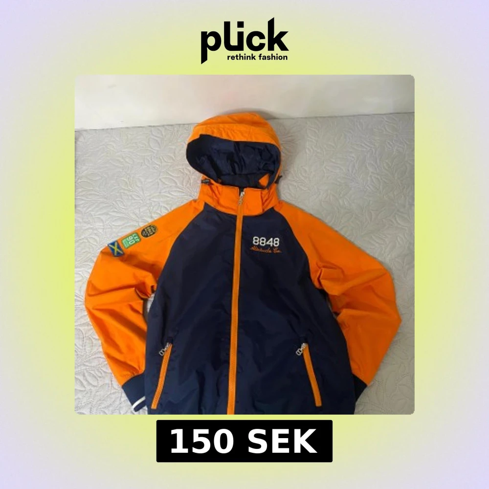 Snygg vindjacka från 8848 Altitude i marinblått och orange med huva och coola broderade patches på ärmen. Jackan har dragkedja framtill, två fickor med dragkedja och logga på bröstet. Perfekt för dig som gillar sportig stil och färgkombinationer.