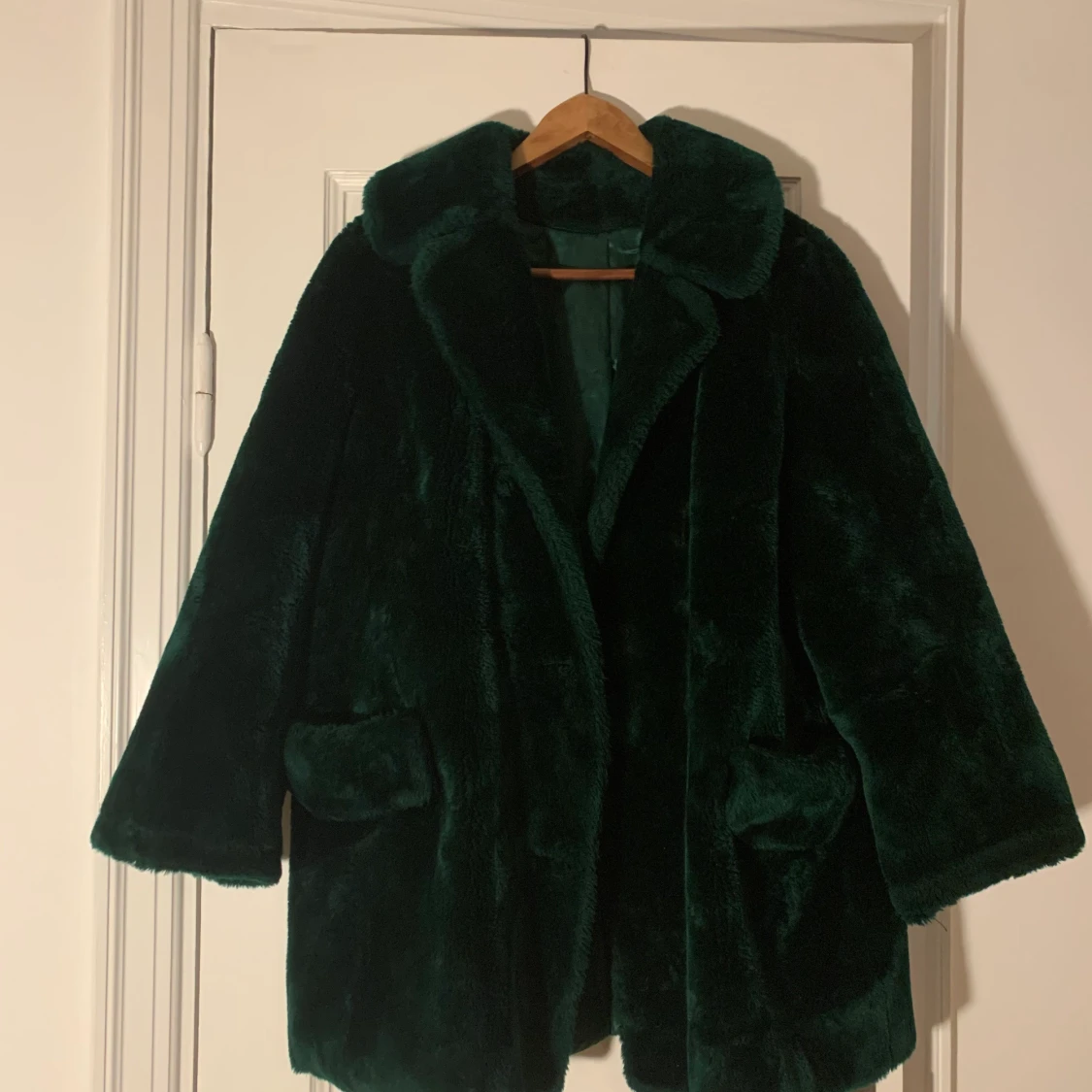 Vintage Grön/smaragd pälsjacka (ej äkta päls)! Suuuperfin färg och varm! lite trasig i silket i ena armhålan men går nog lätt att sy :) storlek S-L beroende på hur man vill att den ska sitta