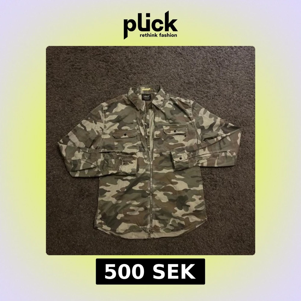 Säljer en snygg camouflage-overshirt från Replay med dragkedja framtill och två bröstfickor med knapp. Skjortan är i bomull och har klassisk krage och lång ärm. Perfekt för dig som gillar streetstyle och vill sticka ut med militärinspirerad look. Det står storlek L men jag skulle säga att den sitter mer som M.
