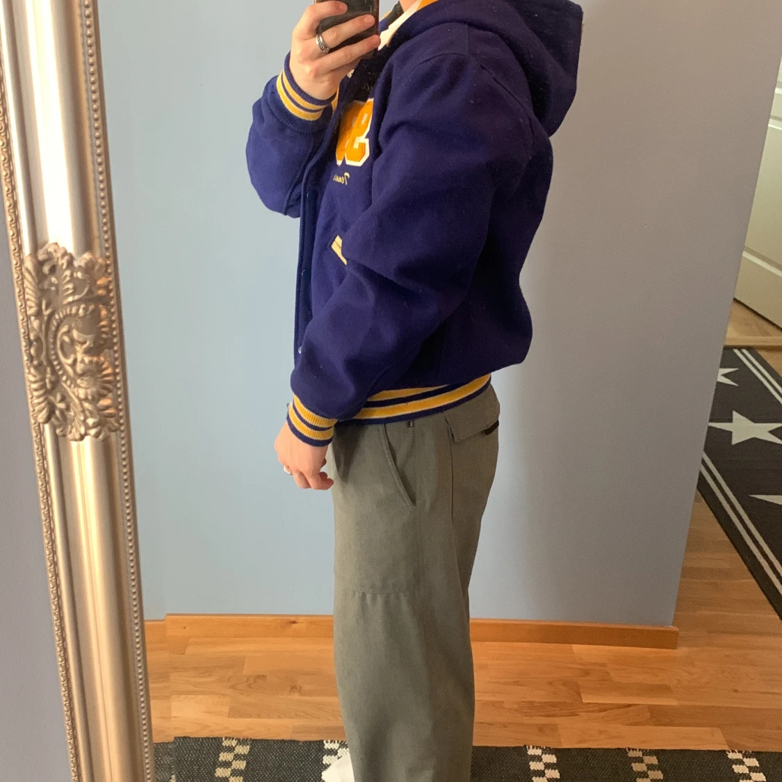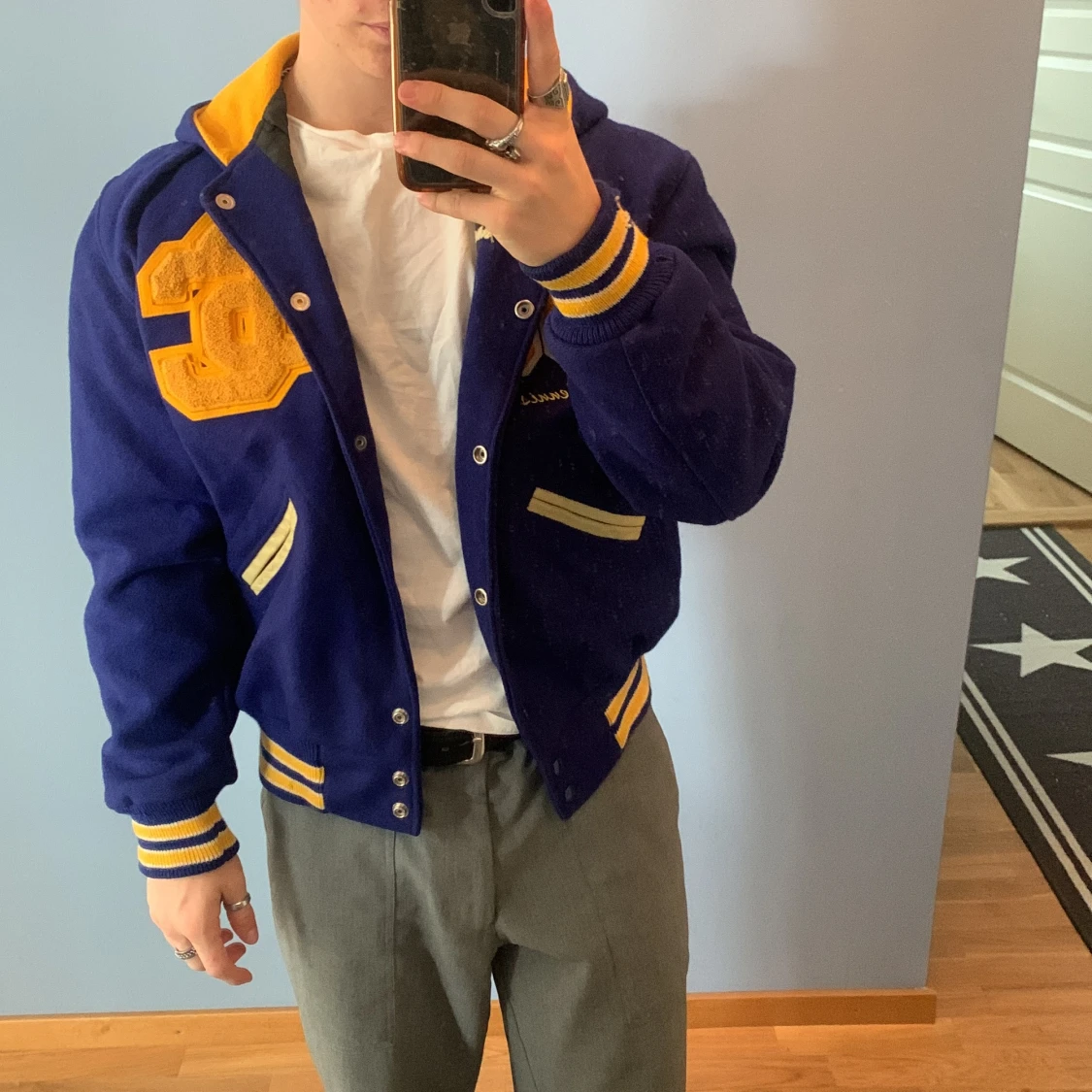 Varsity jacka köpt för 1400 kr i storlek 40. Skulle säga att den passar S/M. Tyget är nött precis vid handlederna o har små hål. Utöver det inga märkbara flaws. Jackan har även en zipluva. Köparen står för fraktkostnad.