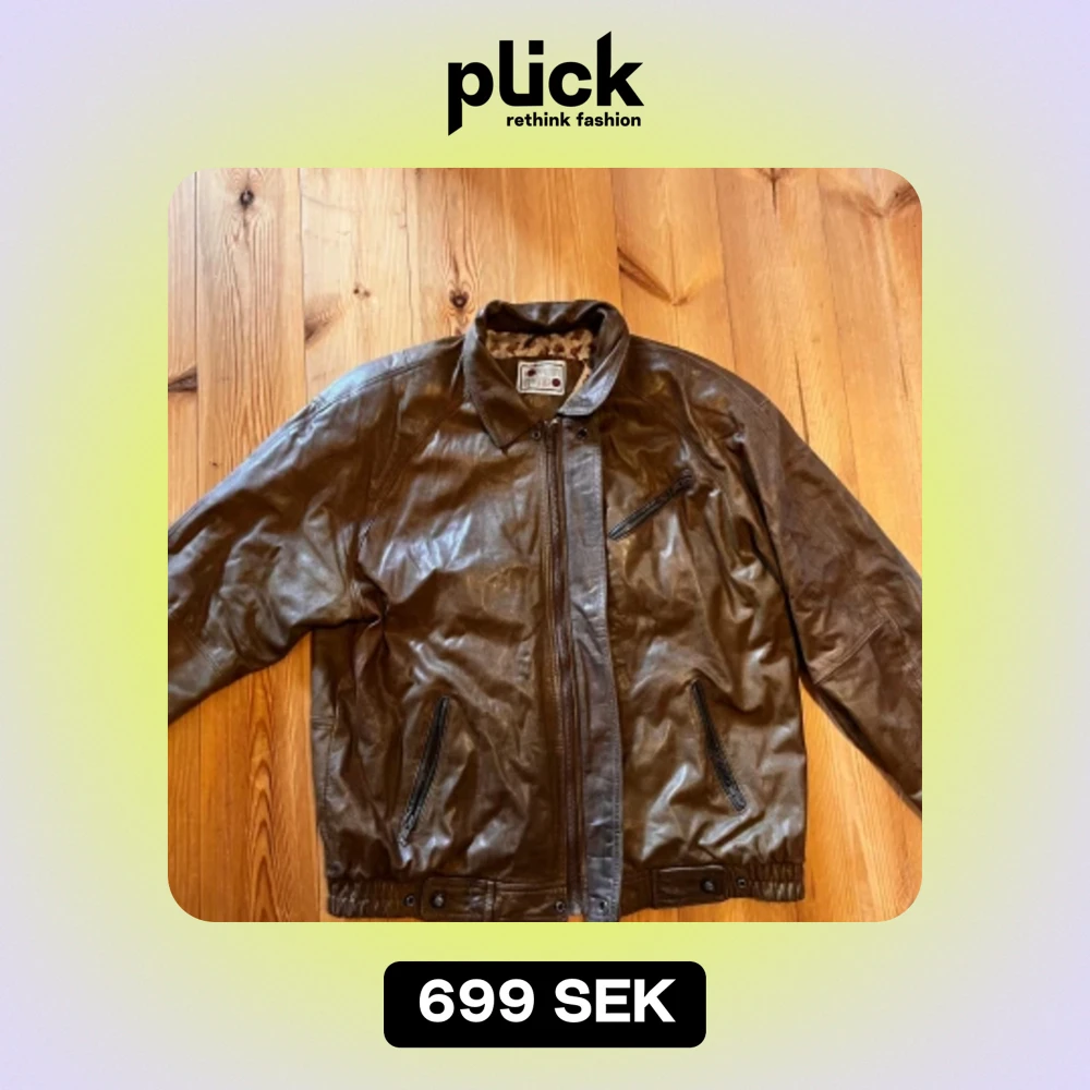 Mycket fet skinnjacka, nästan som ny utan att blixtlåset är lite svårt att dra upp. Passar L/XL. OBS: Är ljusare i verkliga livet.