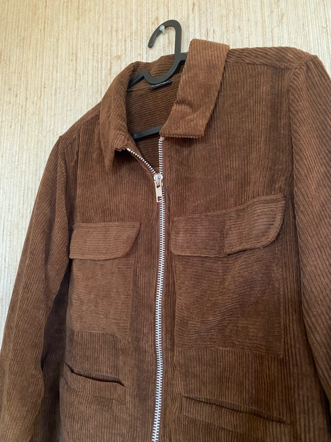 Jacka i Manchester med dragkedja och fickor framtill. Så härlig brun färg🤎 Storlek XL men jag som är S-M har använt den och det ser snyggt ut när den är lite lös👌