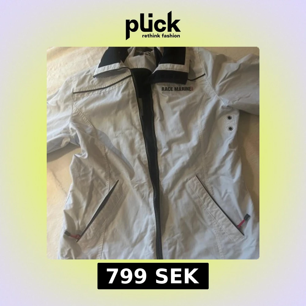 Säljer en vintage vit vindjacka från Race Marine. Storlek 40 (motsvarande small/medium). Väldigt bra skick, knappt använd. Passar väldigt bra till vår/höst