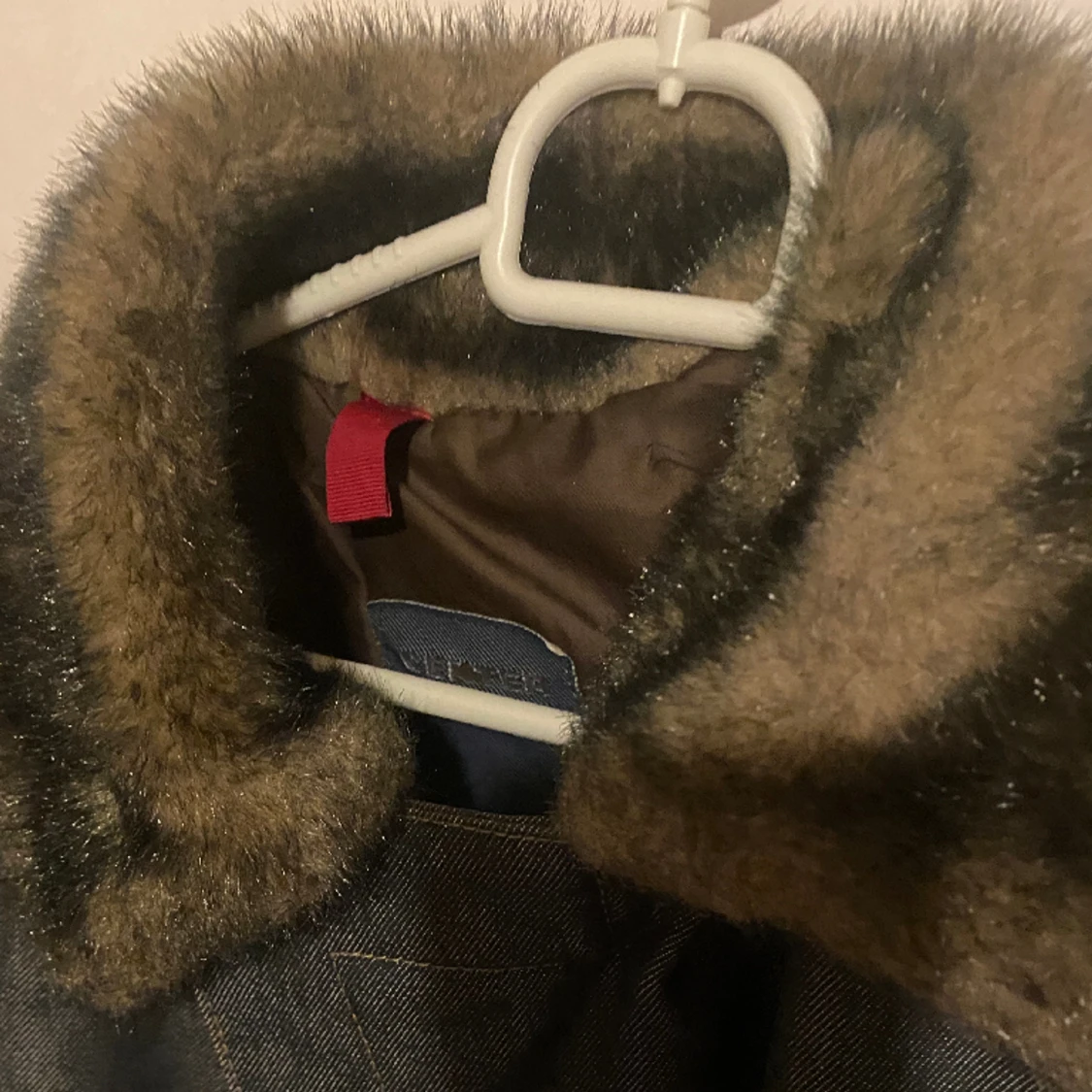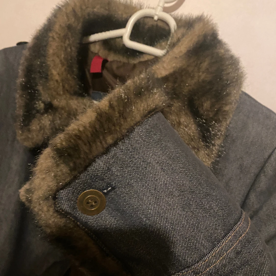 Denim material med insulerad insida, med päls detaljer och krage. I nyskick, använd en gång Pris kan diskuteras vid snabb affär