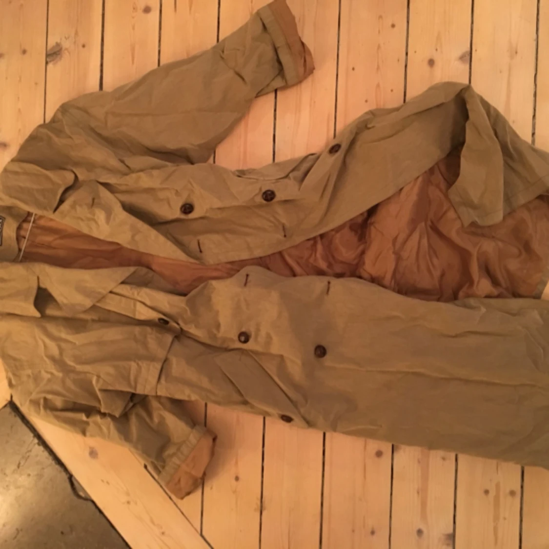 Jättefin trenchcoat tillverkad i bomull och syntetblandning, passar storlek 40. Sparsamt använd och fin kvalitet, sitter supersnyggt på. Köpt i en vintagebutik i Amsterdam. Riktigt kap.