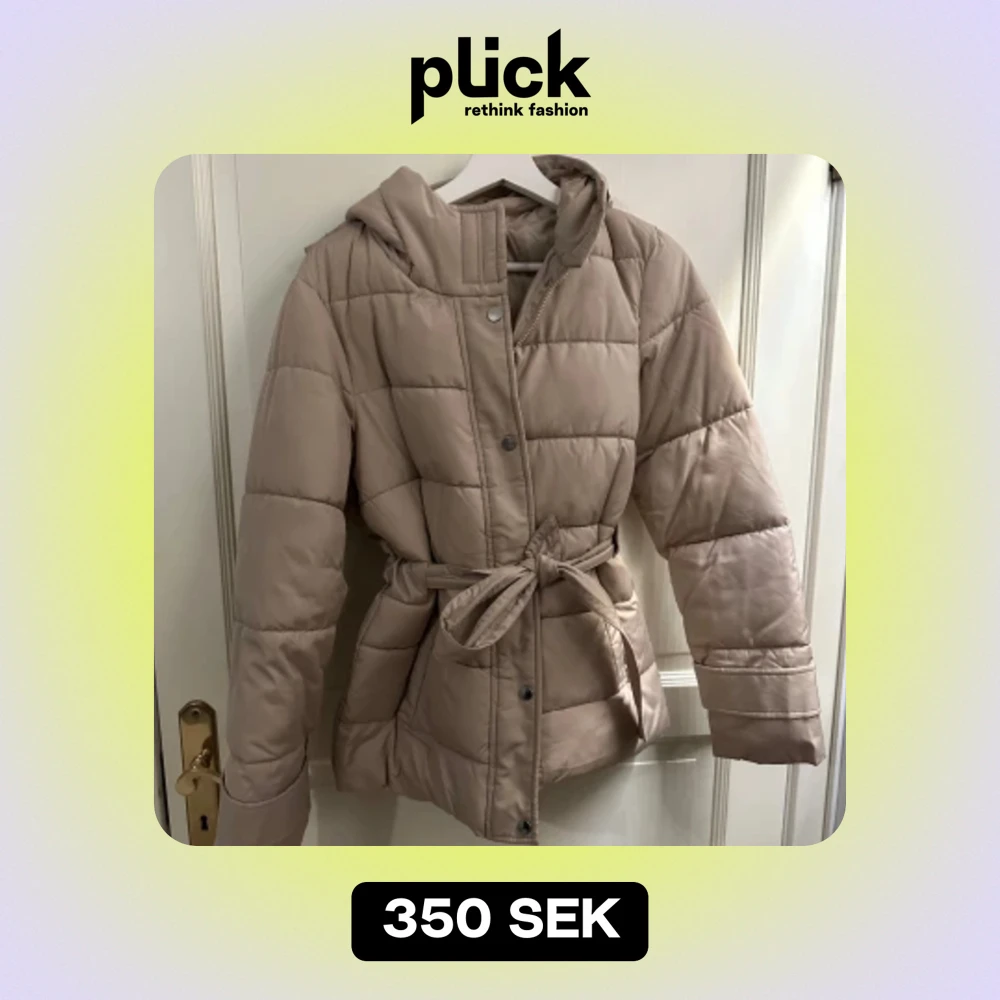 Säljer en superfin beige pufferjacka som är perfekt för kyliga dagar. Jackan är quiltad och har ett snyggt bälte i midjan för en mer definierad passform. Den har en huva och stängs med både dragkedja och knappar. Perfekt för höst och vinter!