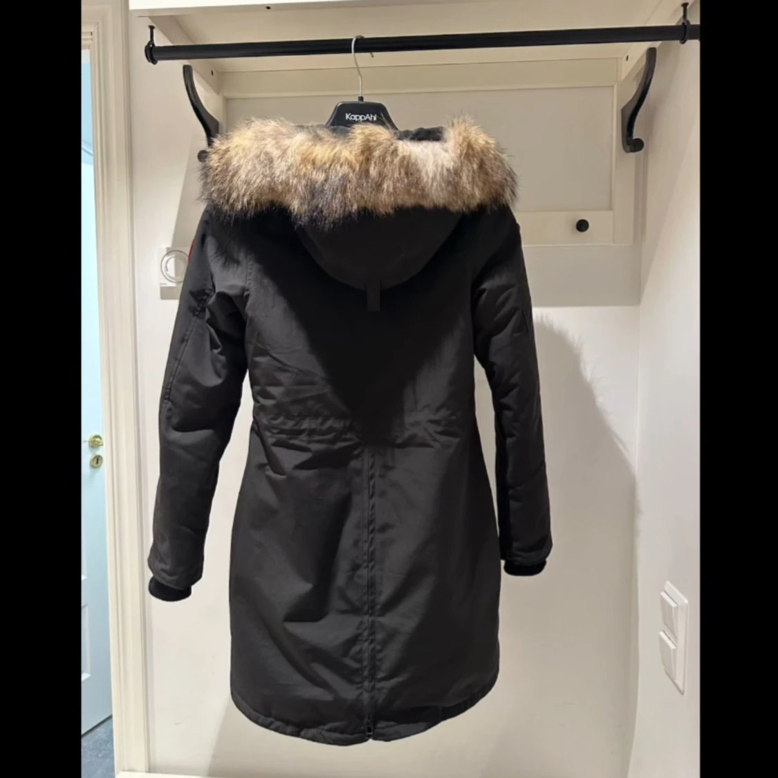 Säljer en svart Canada Goose Rossclair Parka i storlek XS, passar även i S. Jackan har en dragkedja och knappar framtill, samt fem olika fickor. Fri frakt på denna.