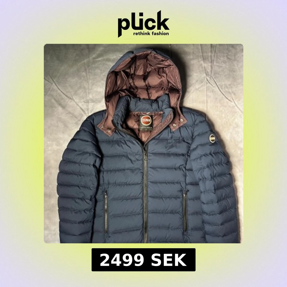 Säljer en mörkblå dunjacka från Colmar med brunt foder och avtagbar huva. quiltad design och Colmar-logga på ärmen. Perfekt för kyliga dagar och riktigt snygg passform. Storlek 50/M