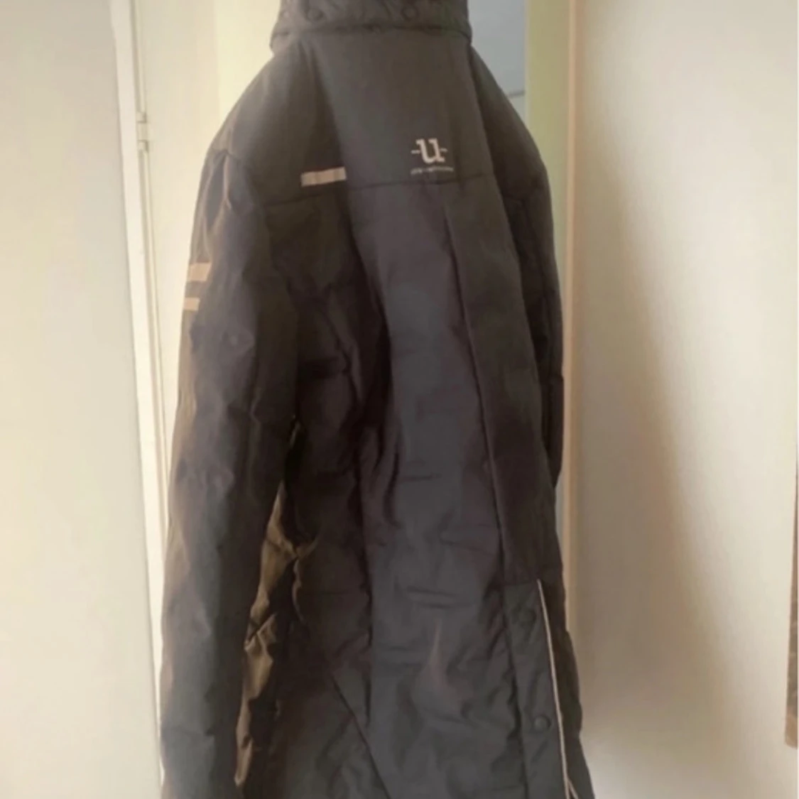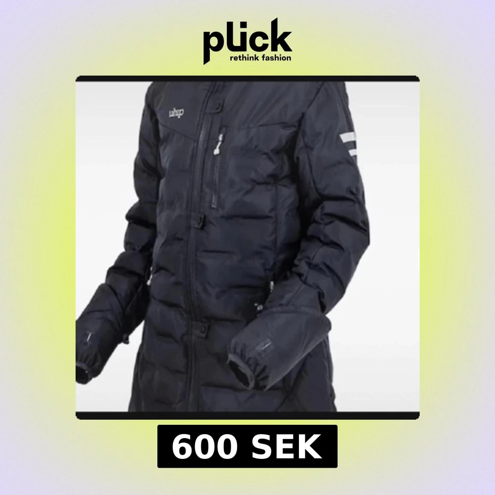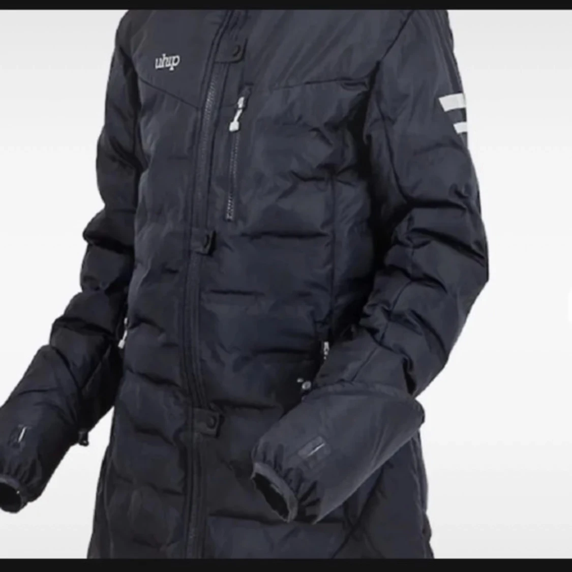 Lång svart dunjacka från Uhip med dragkedja framtill, hög krage och reflekterande detaljer på ärmar och rygg. Jackan har flera praktiska fickor och är perfekt för kalla vinterdagar. Snygg och funktionell design som håller dig varm. Ett litet hål vid armhålan som inte syns på utsidan ❤️