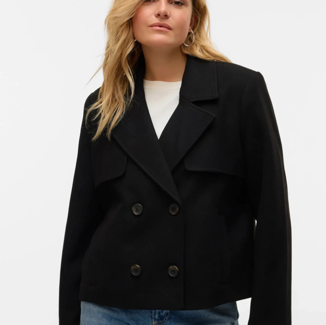 Säljer en svart kappa med klassisk dubbelknäppning och bred krage. ❤️❤️endast använd en gång då ja köpte en annan. Jättesnygg nu till höst/vinter🥰