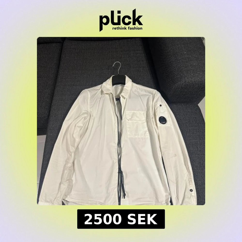 Säljer en stilren vit jacka från C.P. Company med dragkedja och en unik detalj på ärmen. Jackan har en bröstficka och långa ärmar, perfekt för en modern look. Knappt använt den, har legat mycket i gaderoben.