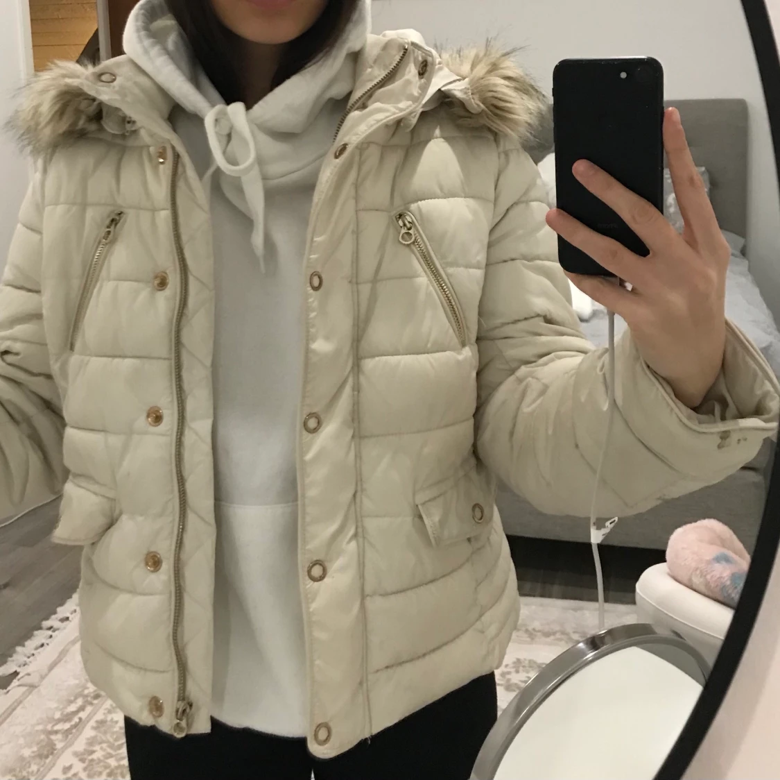 Vit Vinterjacka från Zara! Använd men fortfarande i jättebra skick. Storlek S💘