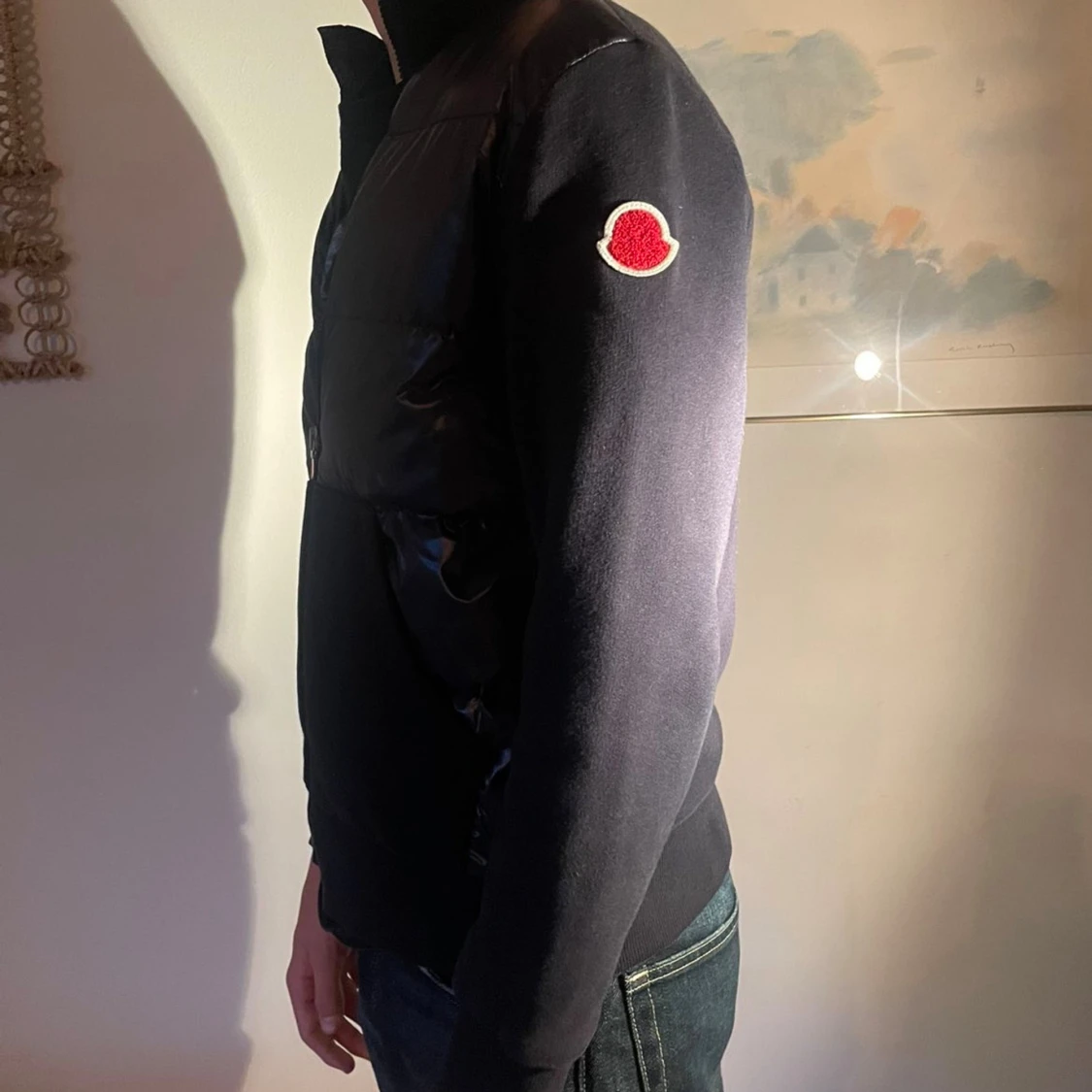 En svart cardigan från Moncler i storlek XS passar även S som är perfekt nu när kylan kommer. Jackan har varma och mjuka ärmar och en glansig framsida. Den har även en röd moncler logga så du sticker ut från alla andra! Självklart äkta med fungerande qr kod.