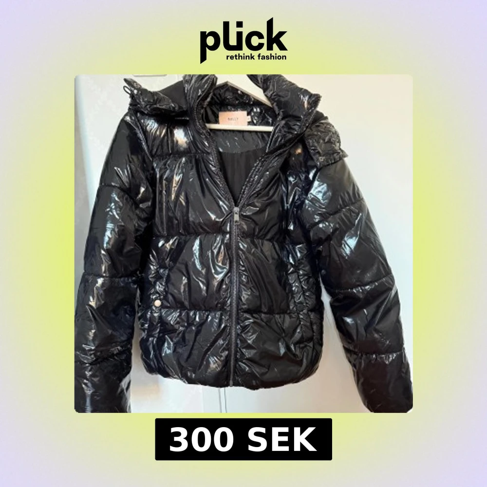 Svart pufferjacka från Nelly i glansigt material med huva och dragkedja framtill. Jackan har quiltad design, långa ärmar och tryckknappar vid fickorna. Perfekt för kalla dagar.